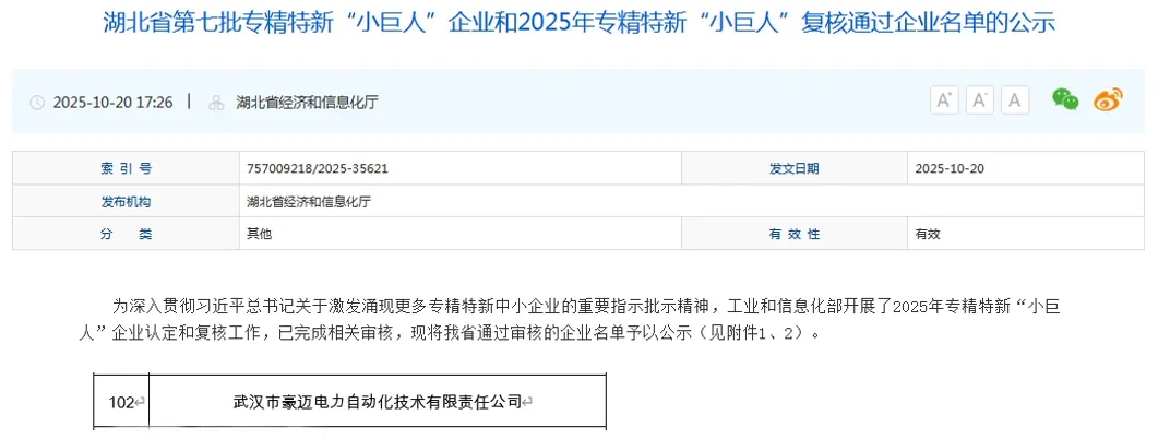 通过国家级专精特新“小巨人”企业复核