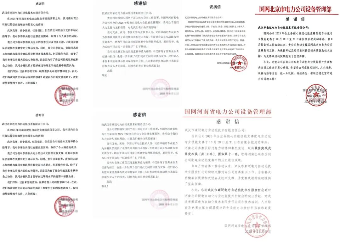 受邀为国家电网2025年设备运检全业务核心班组配电自动化专业技能竞赛、中国华电浙江第八届职工业务技能大赛火电继电保护竞赛、国网河南省电力配电自动化专业技能竞赛、南网超高压公司二次回路作业安全规范技能竞赛、2025年“湖北工匠杯”继电保护技能竞赛、2025年浙能集团继电保护员职业技能竞赛、国网北京市电力公司、国网天津市电力公司、国网冀北电力有限公司2025年度继电保护专业技能竞赛、国网上海市电力公司第三届青年技能竞赛暨2025年配电自动化专业技能竞赛、国铁集团北京局集团公司石家庄供电段铁路供电系统职业技能竞赛等提供赛事保障服务